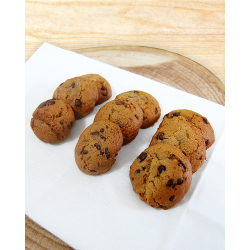 INGREDIENTES: Margarina Vegetal, Panela, Huevo, Harina de Arroz Integral, Almidón de Maíz, sal, goma xantana, impulsor y Chips de chocolate sin lactosa.